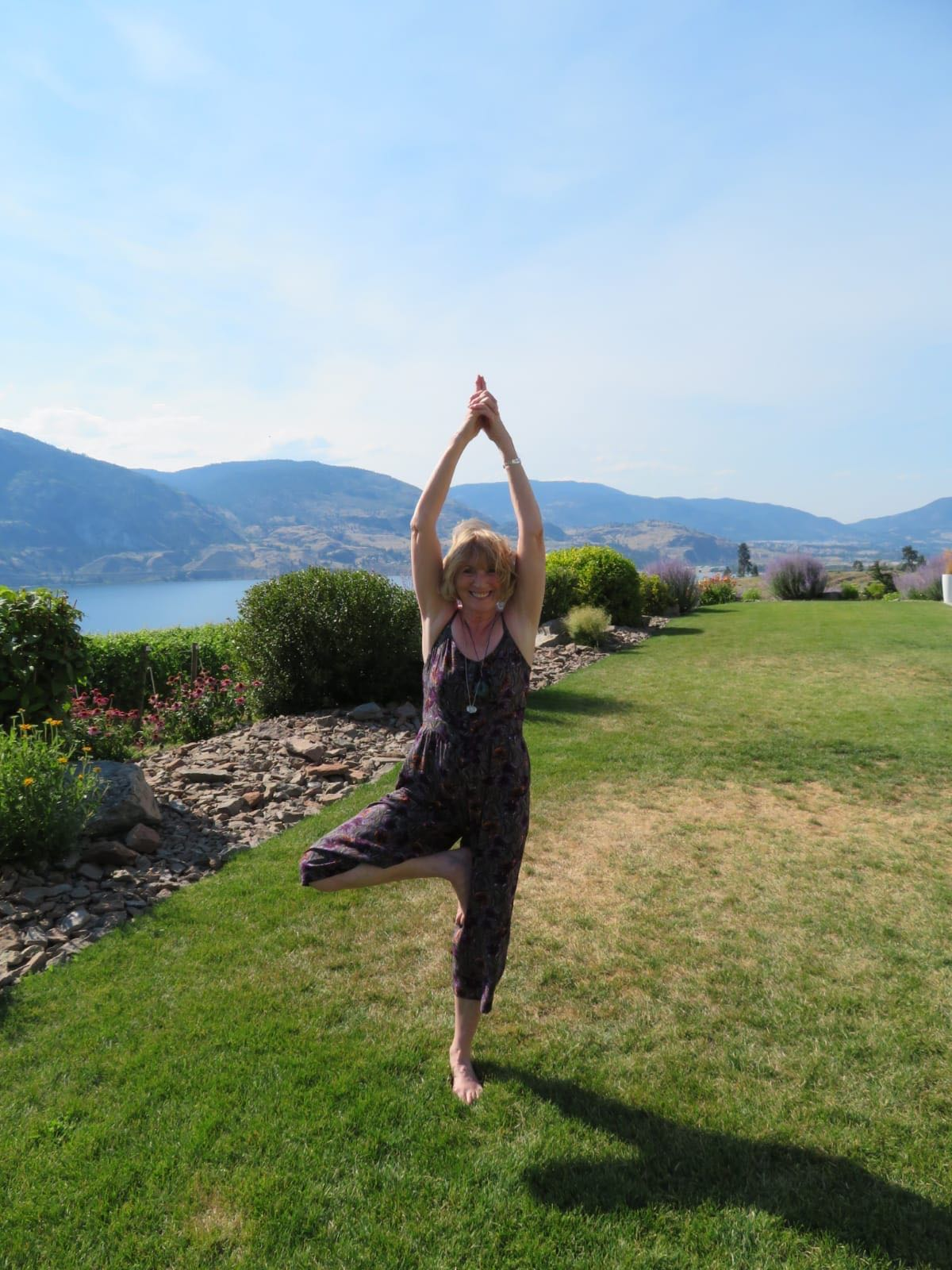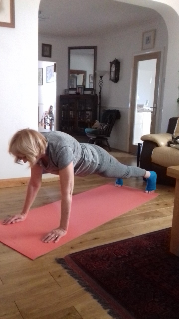 Carole nailing Plank Pose just a couple of months after taking up Yoga .