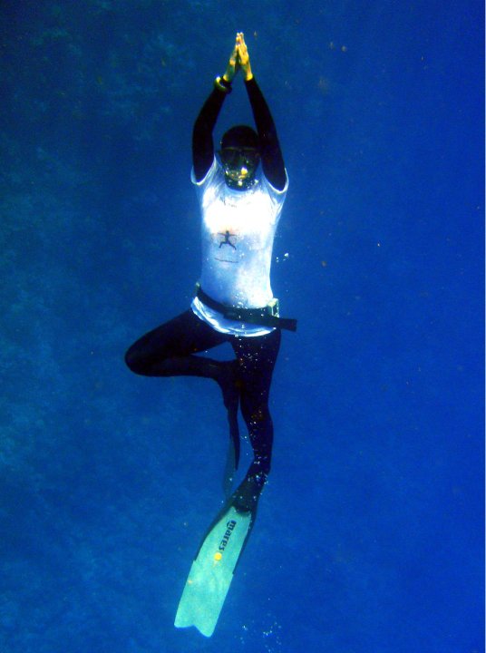 Below is my wonderful friend Nic …. Freediving and doing Yoga in Egypt , as only she could .